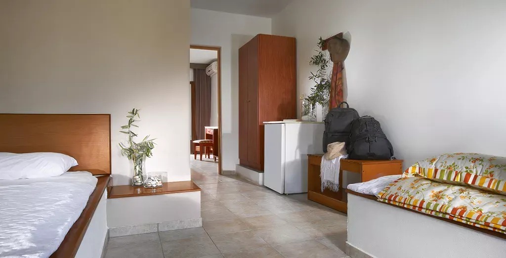 V hoteli Acrotel Elea Beach vás privíta pokojná recepcia, zatiaľ čo elegantná reštaurácia ponúka skvelý výhľad a vynikajúcu kuchyňu. Vo sviežej záhrade sa hostia môžu nadýchať čerstvého morského vzduchu a zúčastniť sa častých grilovacích podujatí. Ak sa chcete osviežiť v krištáľovo čistých vodách zálivu Toroneos, známa pláž s modrou vlajkou sa nachádza len 80 metrov od hotela.