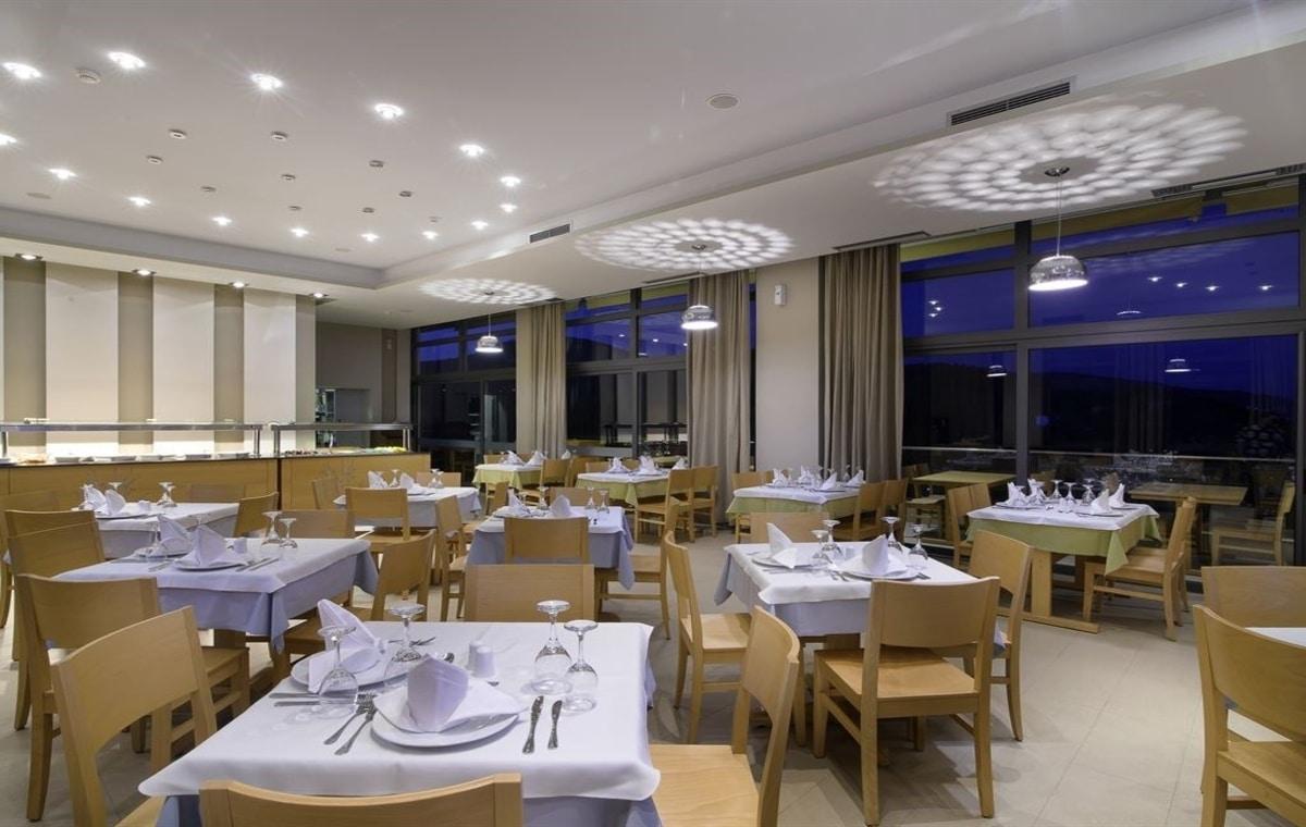 Raňajky, obedy a večere formou bufetu, ľahké občerstvenie počas dňa, káva, čaj, zmrzlina pre deti, nealkoholické a vybrané alkoholické nápoje miestnej výroby v miestach a časoch určených hotelom.Raňajky sa v hoteli podávajú od 8:30 do 11:00. Hlavná reštaurácia Panorama podáva miestnu grécku kuchyňu s výhľadom na Egejské more, zatiaľ čo Bar Serenity vedľa hotelového bazéna poskytuje letnú atmosféru pre dokonalý relax.