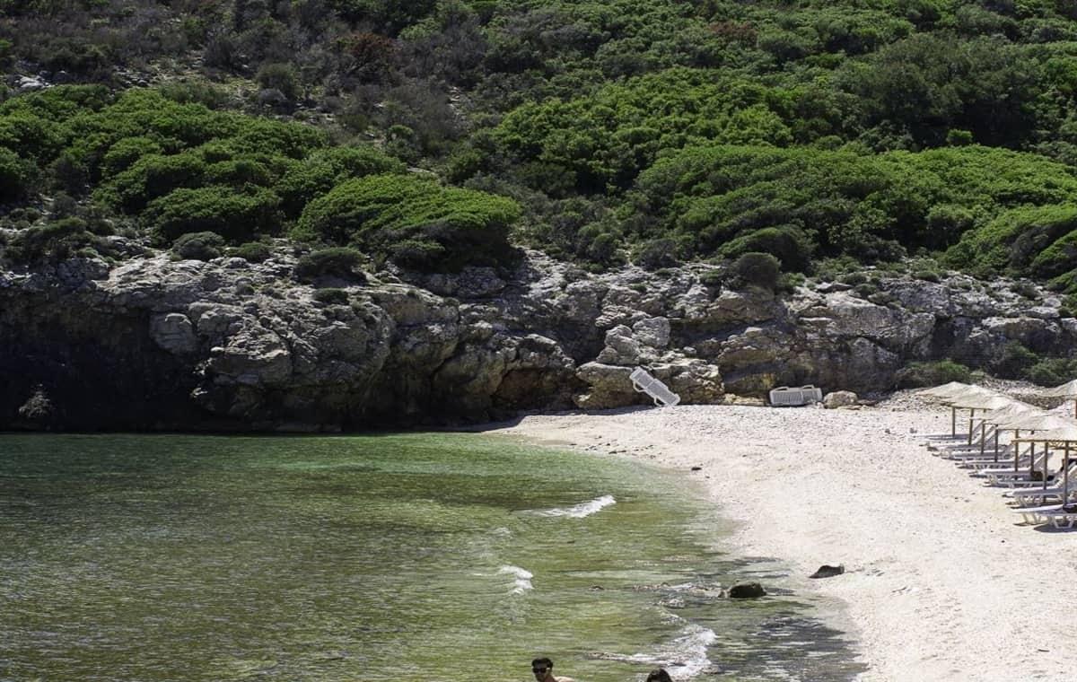 200 m od hotela sa nachádza jedinečná, malá a veľmi pokojná pláž. Romantická piesočnatá pláž s okruhliakmi a miestami kamenistým dnom (odporúčame obuv do vody) sa nachádza priamo pod hotelom, prístup je po strmšej ceste cca 200 m od hotela. Lehátka a slnečníky sú na pláži pod hotelom dostupné zadarmo (limitovaný počet). Na vzdialenejšiu pláž Psili Amos (cca 2,5 km) zaisťuje hotel dopravu zadarmo, lehátka a slnečníky sú za poplatok. Všetky pozývajú návštevníkov vychutnať si krištáľovo čistú vodu, plávať, hrať sa alebo sa dokonca venovať svojmu obľúbenému koníčku.