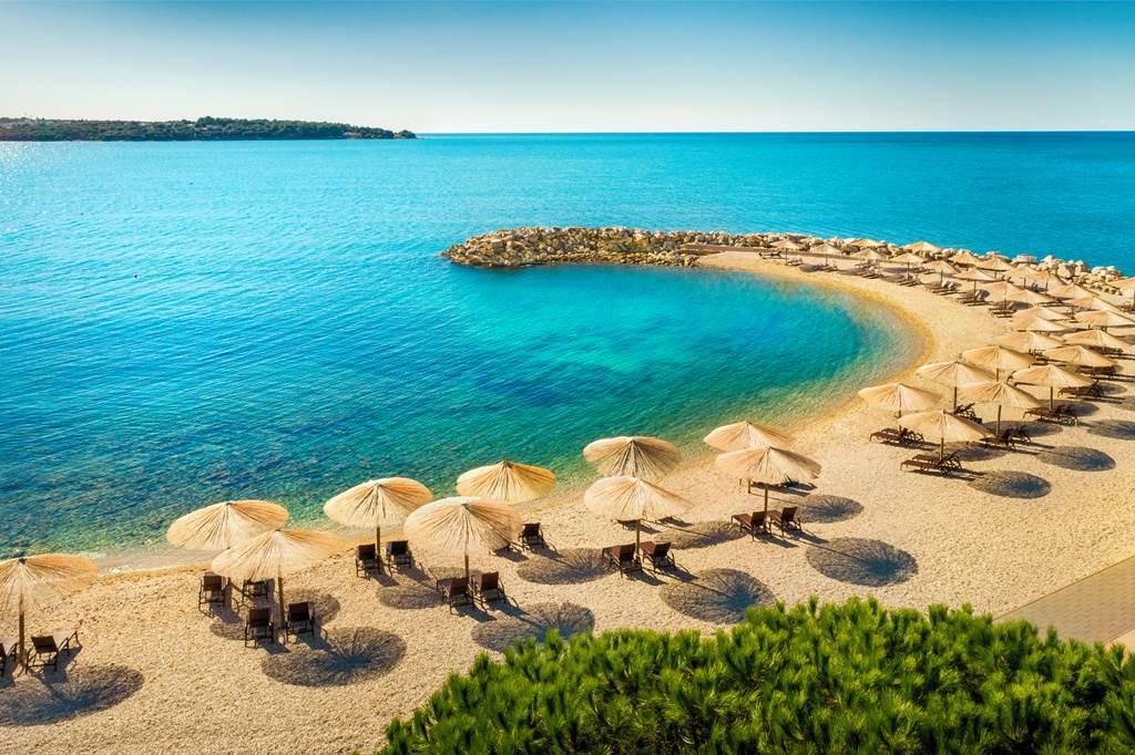 štrková pláž priamo pred hotelom • Punto Mare – plážová zóna s bazénom s morskou vodou • 2 bary • animácie a živá hudba • ležadlá a slnečníky za poplatok • vodné športy za poplatok