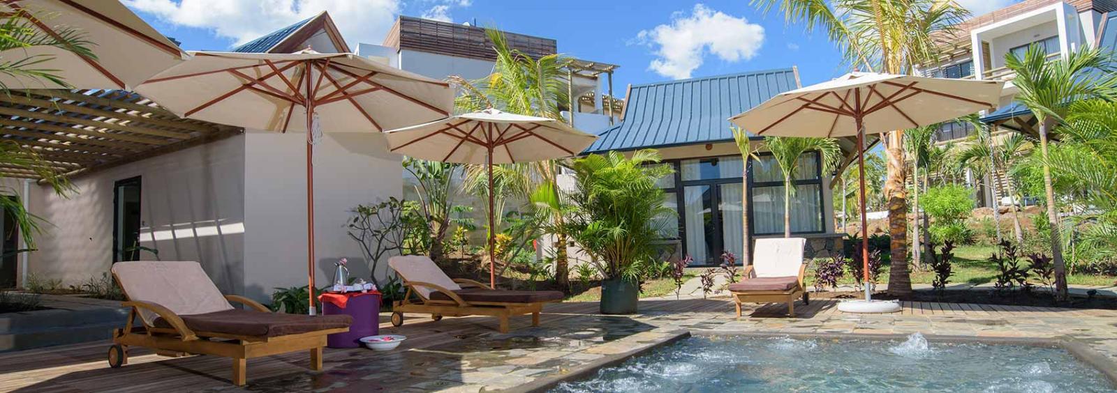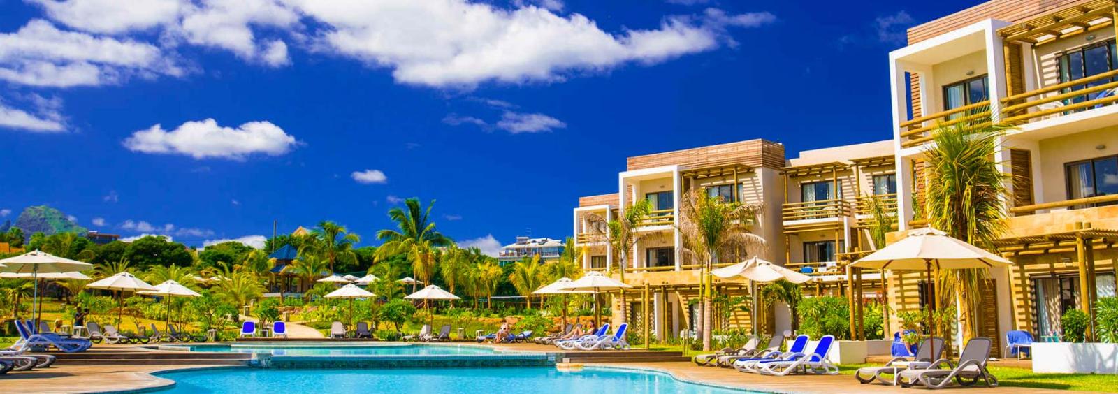 Moderný hotelový komplex dvojpodlažných víl zasadených v udržiavanej záhrade sa nachádza na západnom pobreží ostrova, približne 300 m od centra strediska Flic en Flac, cca 25 km od hlavného mesta Port Louis a cca 40 km od letiska.