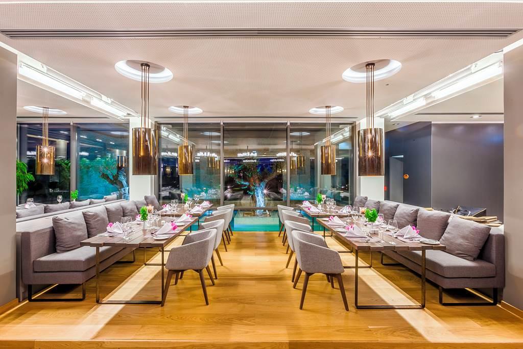 Hostia ubytovaní v hoteli si môžu v hoteli pochutnať na lahodnej rozmanitej kuchyni. V reštaurácii Achilles sa podávajú medzinárodné bufety a niekoľkokrát týždenne sa konajú tematické večery. Na večeru à la carte zamierte do stredomorskej reštaurácie Ithaka. Grécke šaláty a meze sú na kartách v taverne na nábreží Argo. V noci sú v ponuke miestne jedlá a pri jedle budete mať výhľad na západ slnka. Osviežte sa po celý deň v baroch umiestnených v hoteli, pri bazéne a na pláži.