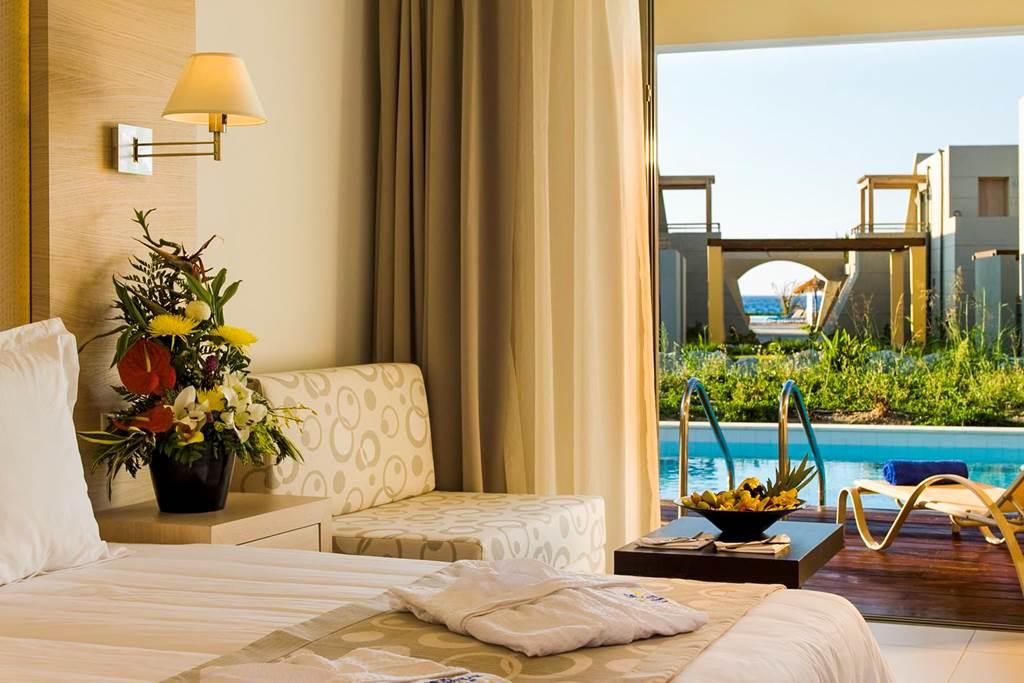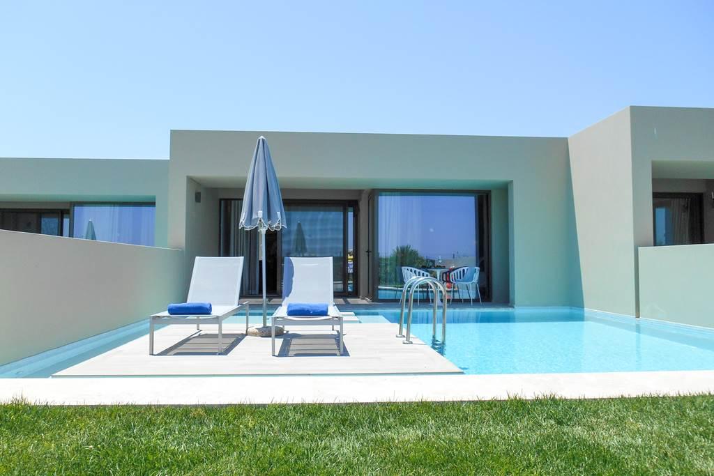Izby sú vybavené dvoma samostatnými lôžkami, prístelkou, detskou postieľkou (bez poplatku), dlažbou, súkromným bazénom, rýchlovarnou kanvicou (bez poplatku), minibarom (možno za poplatok), balkónom alebo terasou, internetom (bez poplatku), trezorom (bez poplatku) a satelitnou TV s plochou obrazovkou a tiež individuálne nastaviteľnou klimatizáciou. Kúpeľňa so sprchou.