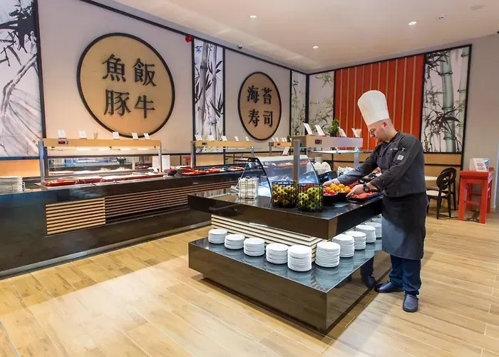 Hotel ponúka hlavnú bufetovú reštauráciu s veľkou terasou a nádherným výhľadom na more, ako aj dve tematické bufetové reštaurácie, ktoré ponúkajú talianske a ázijské špeciality. K dispozícii je tiež Lobby Bar, Bar pri bazéne a Lounge Bar, ktorý je otvorený až do polnoci a poskytuje hotelu nočnú zábavu v podobe predstavení a živej hudby.