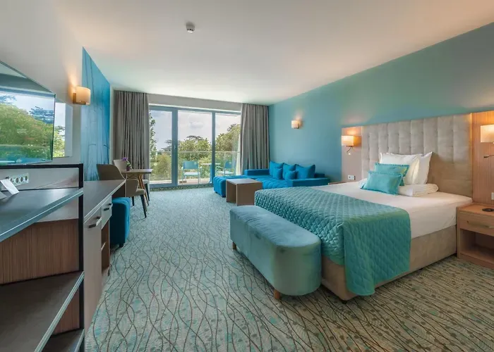 Hotel Astoria All Inclusive & Private Beach sa nachádza v srdci Zlatých pieskov v Bulharsku a je majákom pohodlia a relaxu medzi hotelmi na Zlatých pieskoch. Tento 4-hviezdičkový hotel sa pýši komplexným balíčkom all inclusive, súkromnou plážou s bezplatnými ležadlami a množstvom bazénov, vďaka čomu je pobyt taký relaxačný, ako je nezabudnuteľný. Kľúčové vybavenie, ako je bezplatné bezdrôtové pripojenie na internet a pestrá škála možností stravovania pozdvihujú zážitok hostí a stelesňujú podstatu hotelových služieb na Zlatých pieskoch v Bulharsku.