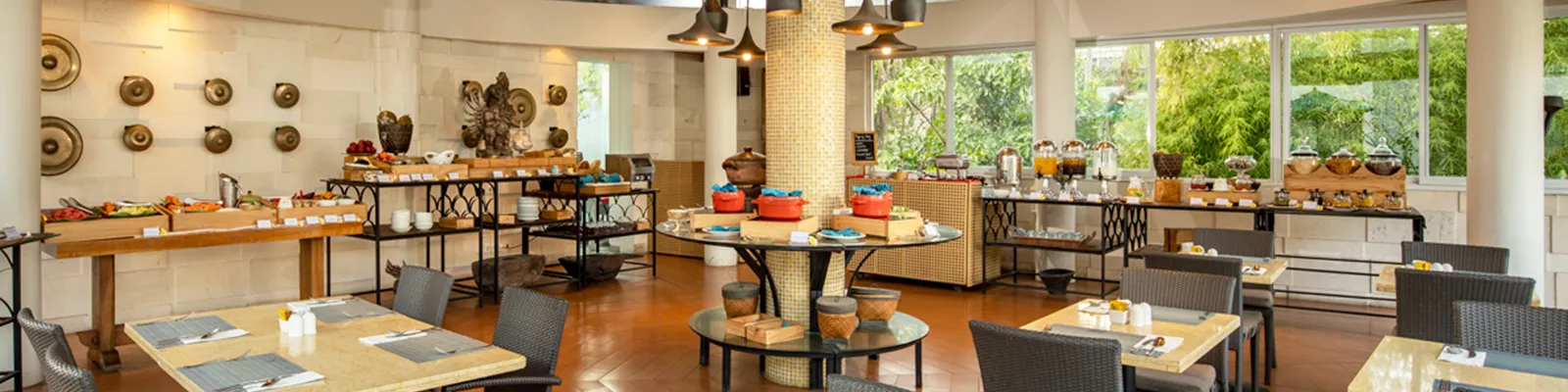 Ponúka široký výber jedál, ktoré vyhovujú každej nálade. Terasa pri bazéne ponúka medzinárodné poschodie s globálnymi vplyvmi a výhľad na bazén v tvare lagúny. Reštaurácia Azaa - pri pohľade na ohromujúci bazén si môžete oddýchnuť a odpočinúť si pri stolovaní medzinárodnej a západnej kuchyne à la carte, kde sa podávajú raňajky, obedy a večere. Občerstvenie a koktaily pri bazéne sú tiež k dispozícii, zatiaľ čo budete nasávať slnečné lúče. Reštaurácia The Beach House Najautentickejšia ázijská kuchyňa v oblasti Legian s výhľadom na pláž Bali so senzačným výhľadom na oceán a nekonečným bazénom TAO Beach House ponúka vynikajúci výber jedál juhovýchodnej Ázie s funky kokteilmi a martini.