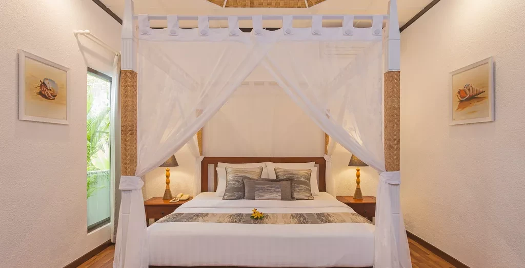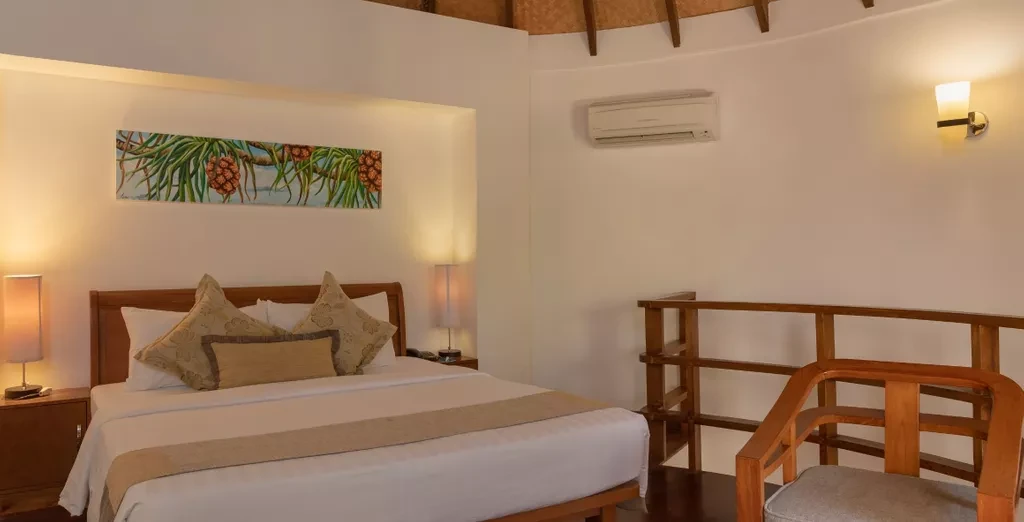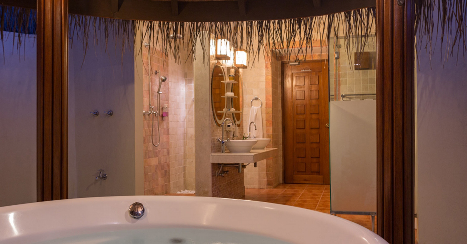Vily s vírivkou na pláži, ktoré sa nachádzajú na páse čistého bieleho piesku s výhľadom na krištáľovo čistú lagúnu a sú obklopené bujnou tropickou flórou, ponúkajú vaše vlastné útočisko na pláži. S tradičnými slamenými strechami a oddelenými obývacími a spálňovými priestormi poskytujú všetko ostrovné čaro a vybavenie, ktoré by ste mohli potrebovať. Z vášho balkóna sa naskytá úžasný výhľad na pláž alebo si môžete oddýchnuť v ústraní vo vlastnej vonkajšej vírivke so slamenou strechou. Vily s vírivkou na pláži zahŕňajú kúpeľňu pod holým nebom, takže sa nikdy nemusíte vzdialiť od upokojujúceho zvuku vĺn, ktoré sa lámu o pláž.