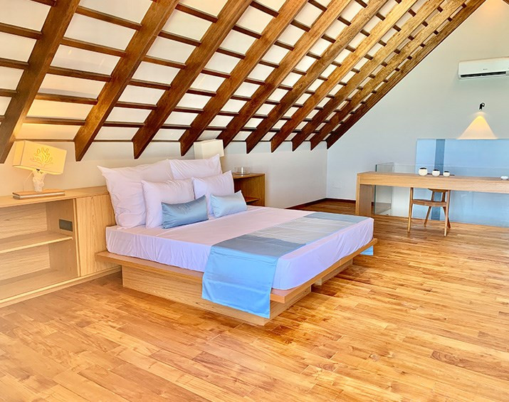 Ubytovanie je minimalistické a evokuje krásnu ostrovnú atmosféru. Bungalovy sa pýšia nádherným výhľadom na pláž a oceán a ponúkajú perfektný priestor na relax a užívanie si maldivského luxusu naboso. Obzvlášť milujeme vily nad vodou, ktoré vyčnievajú nad lagúnu v tvare raje.