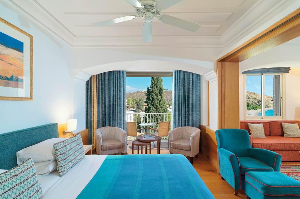 Suity Junior s výhľadom na bazén alebo bočným výhľadom na more majú otvorený priestor so spálňou s posteľou queen alebo 2 oddelenými posteľami, posedením a veľkou mramorovou kúpeľňou so samostatným sprchovacím kútom. Priestranný balkón ponúka výhľad na bazén alebo bočný výhľad na more.