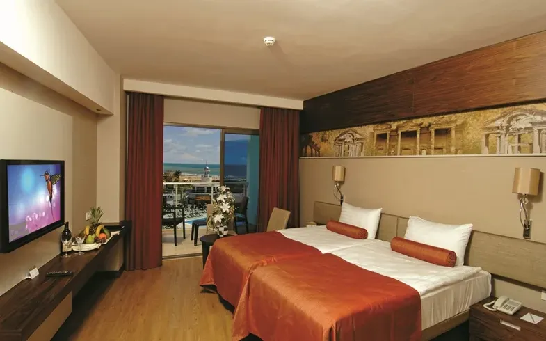 K dispozícii je tiež množstvo večernej zábavy vrátane tanečných vystúpení a tematických tureckých večerov, takže v tomto hoteli nikdy nie je nuda. Završte to všetko hýčkaním v hotelových kúpeľoch, kde nájdete saunu, tradičné turecké kúpele a masážne miestnosti pre skutočne nezabudnuteľnú dovolenku.