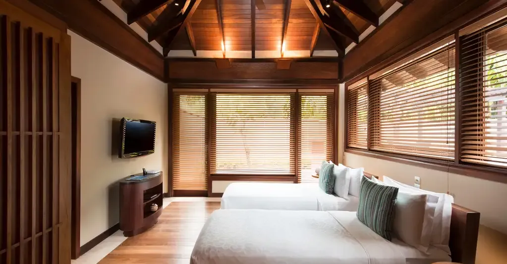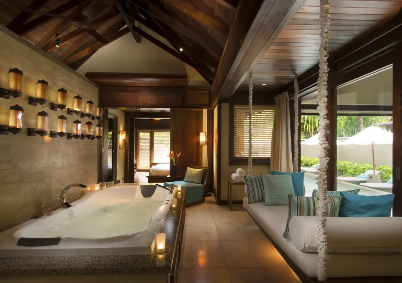 Všetky suity a vily sú atraktívne, veľké a vybavené všetkými modernými vymoženosťami, ako je bezplatné Wi-Fi pripojenie na internet a Apple Mac mini. Suity Junior majú ideálnu polohu medzi hlavnou vstupnou halou a spoločnými bazénmi, len pár krokov od pláže. Rodinné vily, seniorské suity a všetky ostatné vily sa nachádzajú na severnej strane v blízkosti národného morského parku Port Launay.