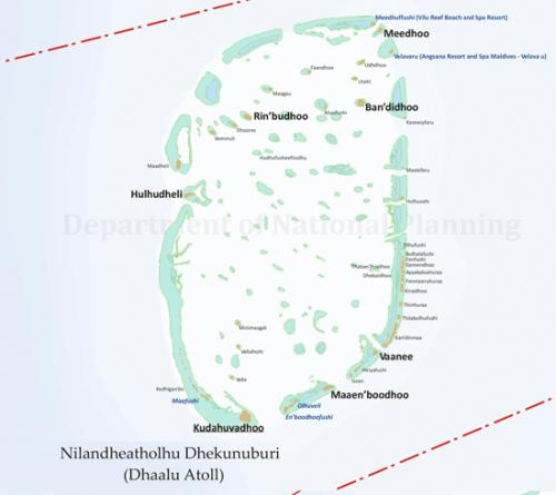 Atol Dhaalu je väčší ako jeho severný sused Faafu a tiahne sa 35 km od severu na juh a 20 km od východu na západ. Skladá sa zo 7 obývaných ostrovov, pričom hlavným mestom je Kudahuvadhoo. Kudahuvadhoo, rušné rybárske mesto, je tiež domovom záhadnej mohyly. Hromada starobylých kameňov bola použitá na stavbu mešity na ostrove, ktorú nórsky dobrodruh Thor Heyerdahl neskôr opísal ako najkrajšie murivo, aké kedy videl.