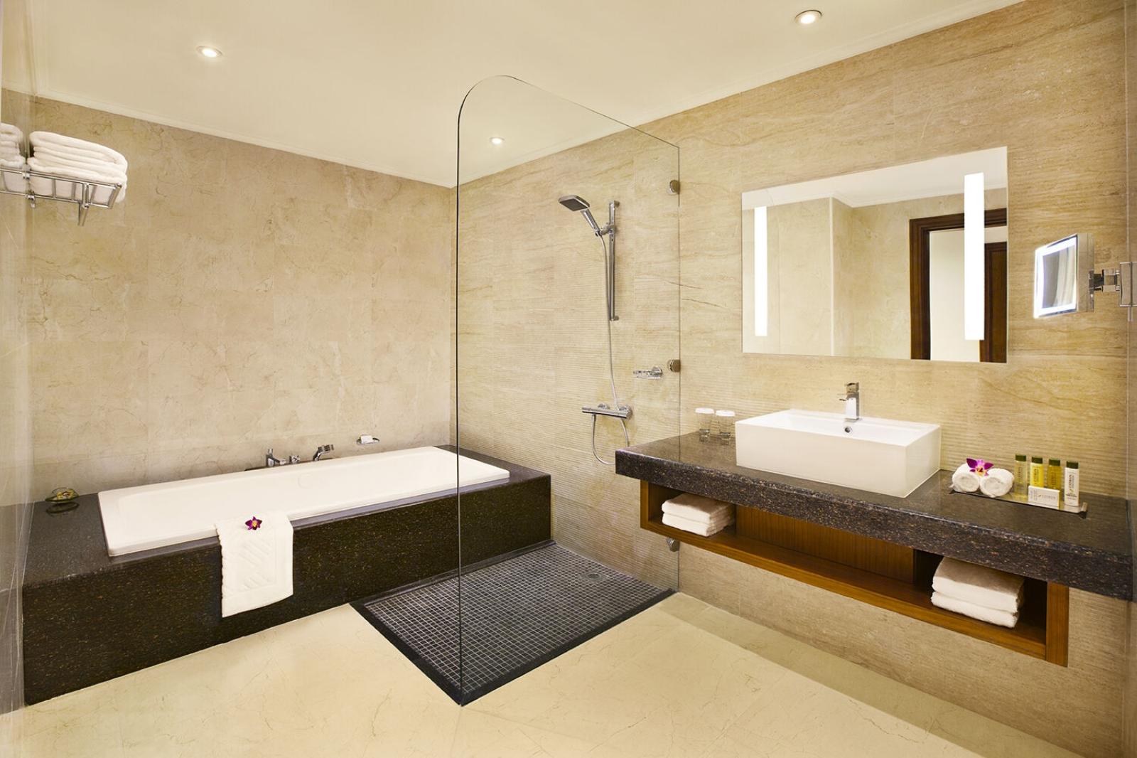 • izby Guest (32 m²) s výhľadom na bazén alebo na more • individuálne kontrolovateľná klimatizácia • kúpeľňa • sušič vlasov • LCD TV (42 programov) • rádio • telefón • minibar za poplatok • set na prípravu kávy a čaju • žehlička a žehliaca doska • trezor • pohodlné sedenie na balkóne alebo na terase
