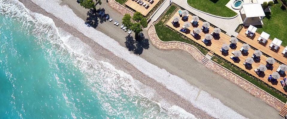Electra Palace Hotel Rhodes 5*, obklopený zlatým pieskom, kamienkami a azúrovou vodou, vyžaruje luxusné zážitky. Od súkromnej pláže s módnou terasou a elegantnými ležadlami až po pokojné wellness centrum je tento hotel ideálnym miestom na odpočinok.