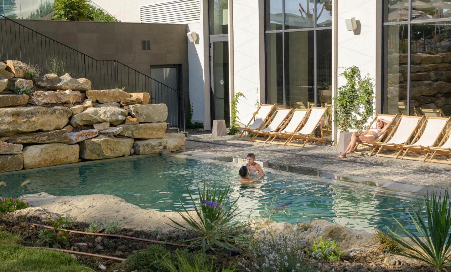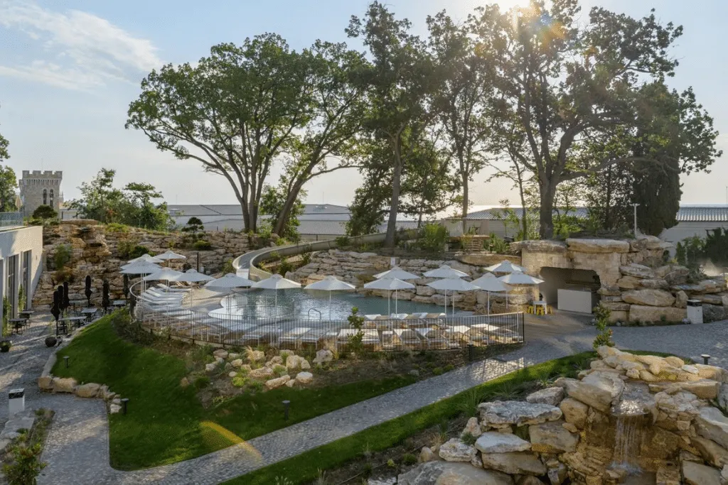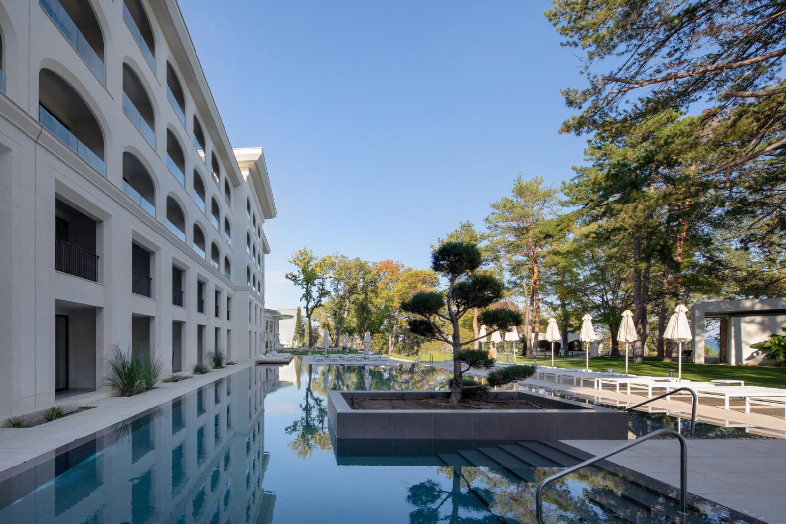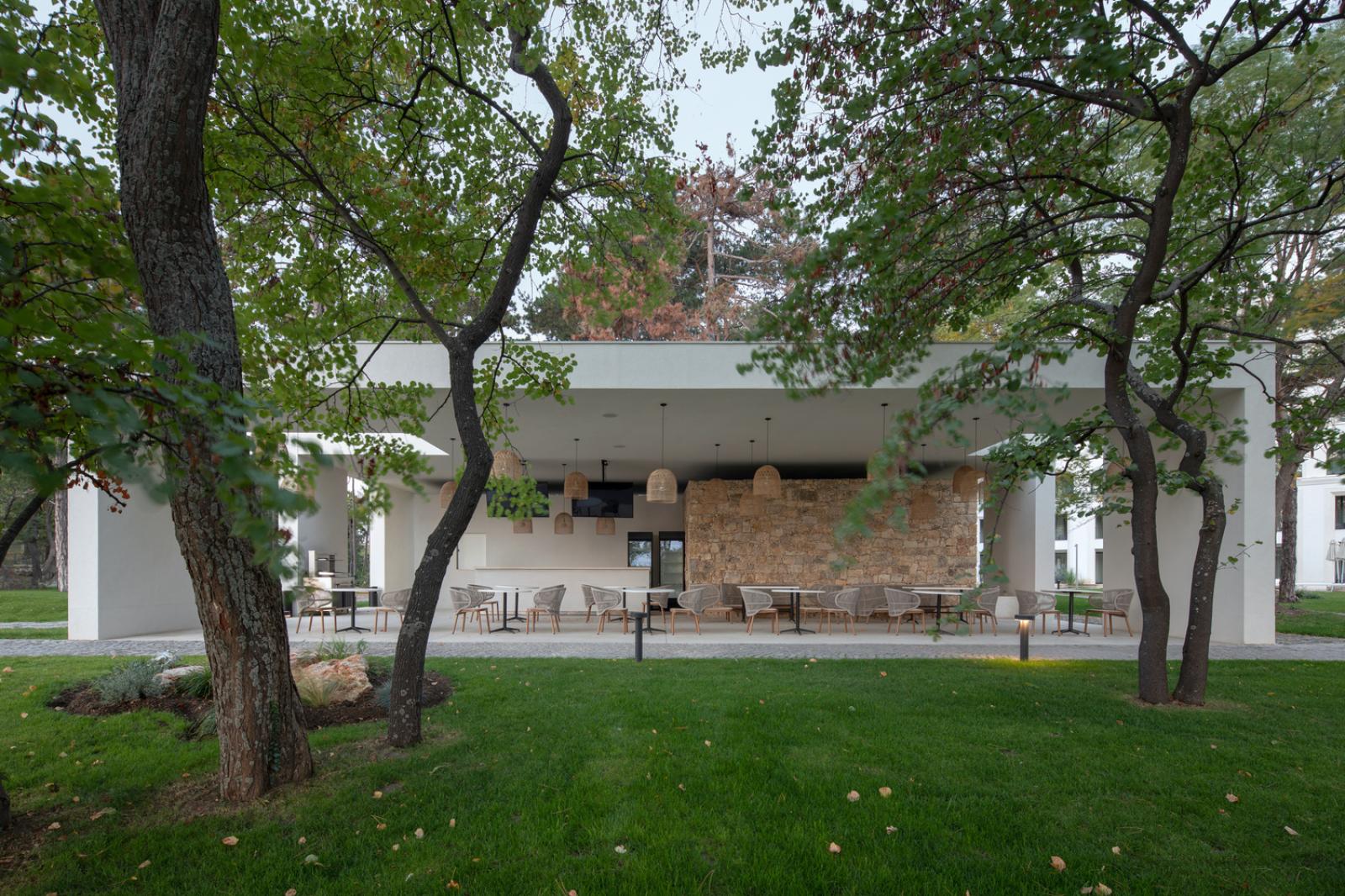 Hotel inšpirovaný prírodnými tvarmi ako voda a piesok, obklopený borovicami, spája moderný luxus s prírodnými zdrojmi.