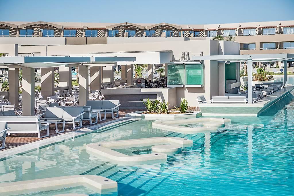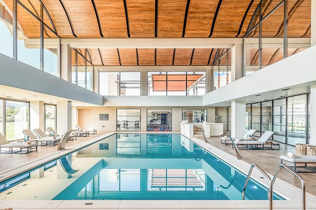 Hlavný vonkajší bazén je jedným z najväčších v Grécku, takže si môžete užiť osviežujúce kúpanie alebo si jednoducho ľahnúť na jedno z okolitých ležadiel s obsluhou na nápoje. Ak máte chuť posunúť svoje zážitky pri bazéne na vyššiu úroveň, môžete si vziať jeden z altánkov (nutná rezervácia, za príplatok) vybavených vlastným minibarom a tanierom s ovocím. Ak dávate prednosť aktívnemu pohybu, hotel ponúka posilňovňu na mieste so špičkovým vybavením a rad denných aktivít, ako je tenis na tenisových kurtoch, futbal na mini ihrisku, joga, pilates, cyklistika, turistika, bedminton, aqua fitness, vodné pólo a plážový volejbal. K dispozícii je aj množstvo zariadení pre mladších hostí, vrátane detského klubu (dve skupiny – 4-12 rokov), tínedžerského klubu (13+) a rodinného klubu pre deti od 0 do 4 rokov, kde môžu rodičia stráviť kvalitný čas so svojimi deťmi v kreatívnom prostredí.