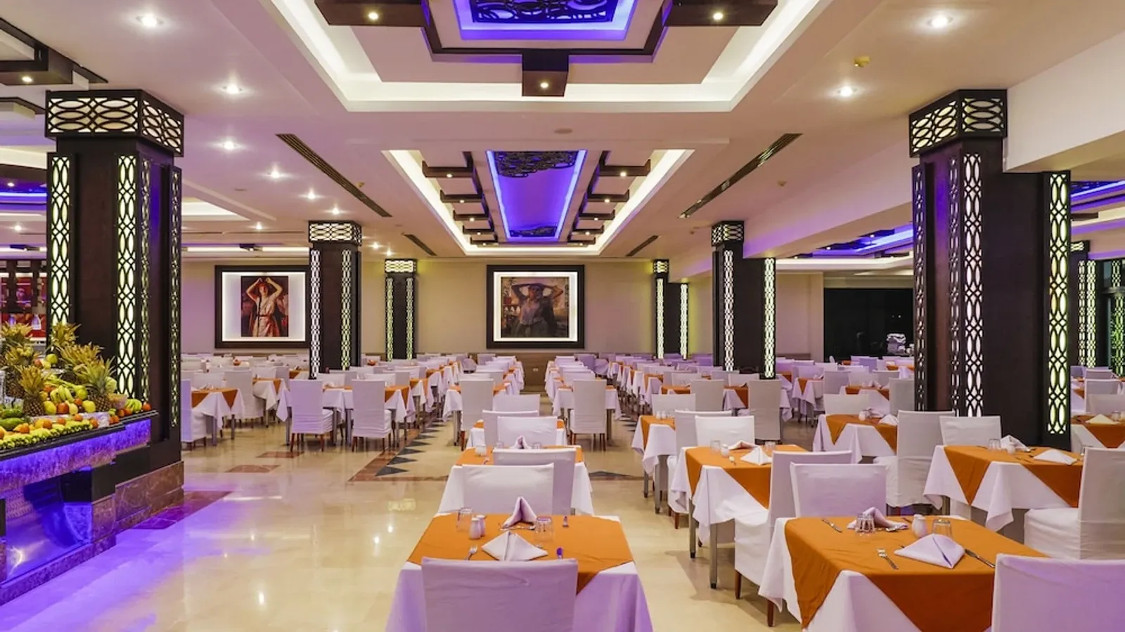 Hotel ponúka dve reštaurácie - Fantazia main restaurant a Valentina (a la carte). Hosťom je k dispozícii niekoľko barov. Fantazia je hlavná bufetová reštaurácia, kde sa denne podávajú raňajky, obedy a večere. Raz týždenne sa na pláži koná večera z morských plodov (za poplatok). Gazebo Bar ponúka nápoje, ako aj občerstvenie, pizzu a pečivo. V hoteli sa nachádza aj bar Pavarotti Cocktail & Lounge Bar, lobby bar, bar pri bazéne, plážový bar Lagoon, plážový bar Relax, stan Bedoin a diskotéka Le Mirage, ktorá ponúka nápoje až do polnoci. V hlavnej bufetovej reštaurácii je k dispozícii aj detské menu.