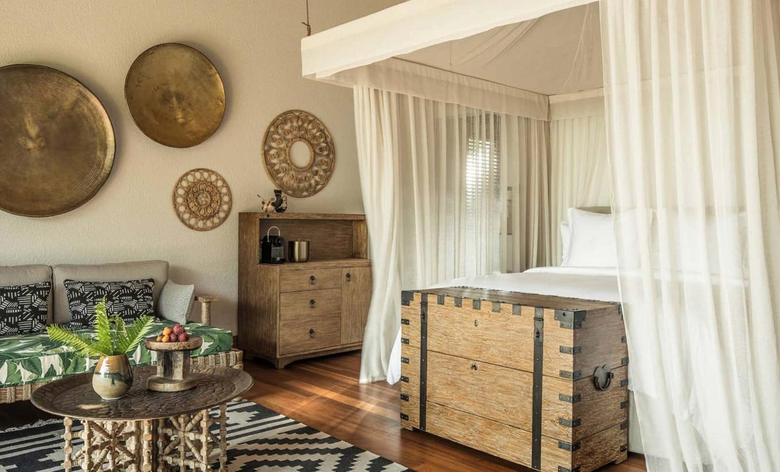 - Dvojspálňová suita Desroches , rodinná izba, nefajčiarska izba, prvý rad na pláž, západná strana, výhľad na more, do záhrady, výhľad na oceán, cca 233 m², posledná kompletná rekonštrukcia v roku 2018, celkový počet izieb v tento typ izby: 3, rozloženie takto: obývacia izba, 2 spálne, 2 manželské postele (183x203cm), 2 rozkladacie pohovky (143x203cm), 1 prístelka, detská postieľka: zdarma, moskytiéra, klimatizácia: zdarma poplatok, individuálne nastaviteľný, studený, teplý, podlaha: dlažba, parkety, trezor: zadarmo, stropný ventilátor, posedenie, pohovka, písací stôl, kuchynský kút, chladnička: bez poplatku, mikrovlnná rúra, Nespresso kávovar, rýchlovarná kanvica , jedálenský stôl, minibar: za poplatok, nealko: za poplatok, voda: za poplatok, alkoholické nápoje: za poplatok, občerstvenie: za poplatok, naplnenie minibaru, telefón, Internet: WLAN/WiFi: bez poplatok, TV: v obývacej časti, v spálni, nemecké kanály, satelitná TV, káblová TV, dokovacia stanica pre iPod, izbová služba: za poplatok, komorník služba: za poplatok, upratovacia služba: bez poplatku, sprcha, vonkajšia sprcha, dažďová sprcha, vaňa, WC, samostatné WC, župan: bez poplatku, papuče: bez poplatku, 2 kúpeľne, niekoľko kúpeľní, sušič vlasov, kozmetické zrkadlo, terasa : s ležadlami, s ležadlami, s posedením, loggia, veranda, s vlastným bazénom, so súkromnou záhradou
