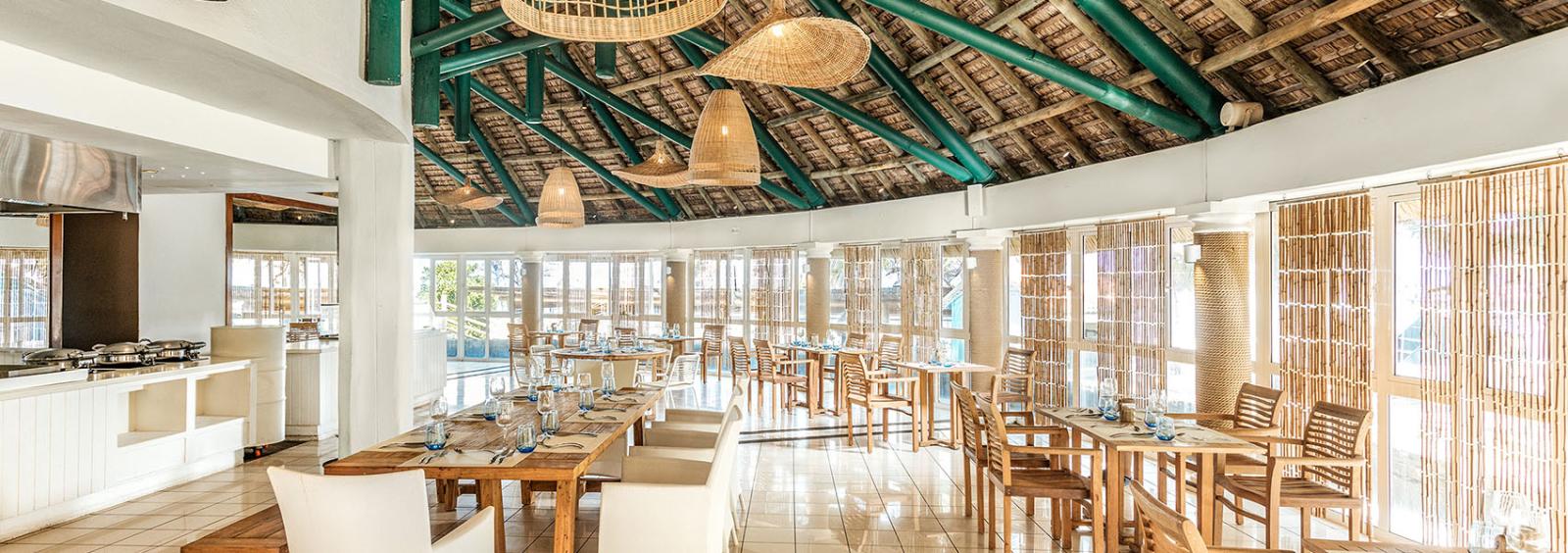 Priestranná reštaurácia ponúka maurícijskú a medzinárodnú kuchyňu s raňajkami formou bufetu, à la carte alebo bufetovým obedom a večerou je buď tematický bufet alebo table d'hôte. V čase čaju si pri bazéne vychutnajte palacinky s čajom alebo kávou. Oblečenie je neformálne na raňajky a obed; neformálne a elegantné na večeru. V priestoroch reštaurácie a baru nie sú povolené plavky a pareo; šortky nie sú akceptované v priestoroch reštaurácie a baru pri večeri.