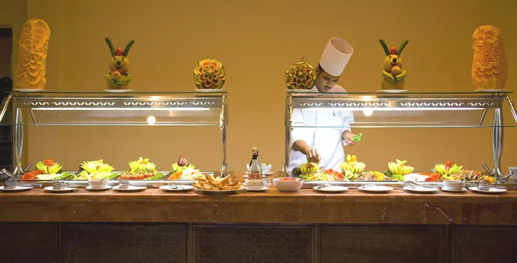 Program All Inclusive zahŕňa skoré raňajky (03:30-07:00), raňajky (07:30-10:00), obed (12:30-14:30), večeru (19:30-21:30) a neskorá večera (22:00-03:00), všetko podávané formou bufetu v hlavnej reštaurácii. V reštaurácii La Mia Africa sa od 19:00 do 21:30 podávajú aj večere à la carte spolu s pizzou (11:00 - 18:00), občerstvením (12:30 - 14:30) a čajom (17:00: 00-18:00).