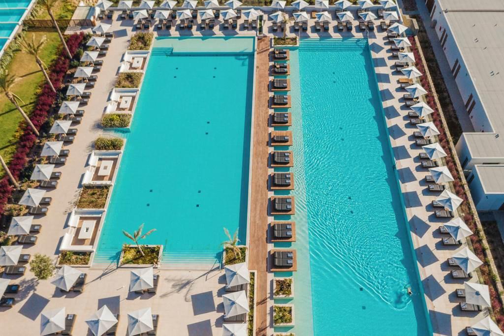 Tri bazény – tvoria obrovský vonkajší komplex, od superpriestranného hlavného bazéna až po plytšiu možnosť, kde sa môžu deti čľapkať. Hotel má vonkajšie bazény, obklopené priestrannou slnečnou terasou a lemované ležadlami a slnečníkmi. Navyše je tu praktický bar pri bazéne, ktorý ponúka chutné občerstvenie a osviežujúce nápoje. V hoteli nájdete krytý bazén, posilňovňu a kúpeľné centrum so saunou, hammamom, vírivkou a masážami.