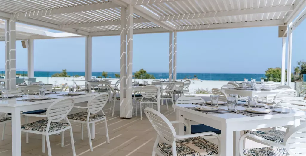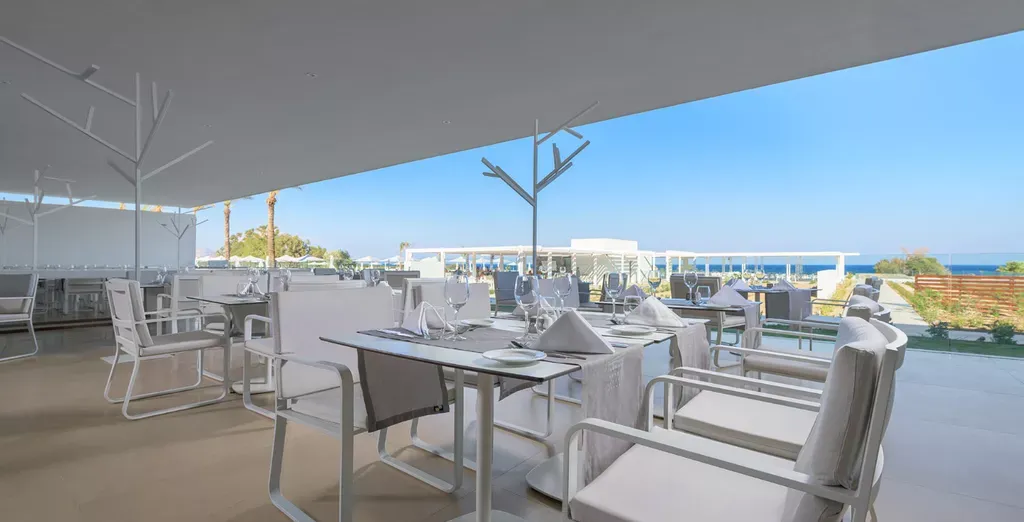 Pokiaľ ide o jedlo a pitie, hotelová bufetová reštaurácia ponúka výber gréckych a medzinárodných jedál na raňajky, obedy a večere s prípravou jedla pred očami hostí. K dispozícii je gurmánska reštaurácia a množstvo à la carte reštaurácií, ktoré ponúkajú rôzne jedlá gréckej a medzinárodnej kuchyne vrátane ázijskej a talianskej. Okrem reštaurácií je tu aj množstvo barov, kde si môžete dať drink a oddýchnuť si.
