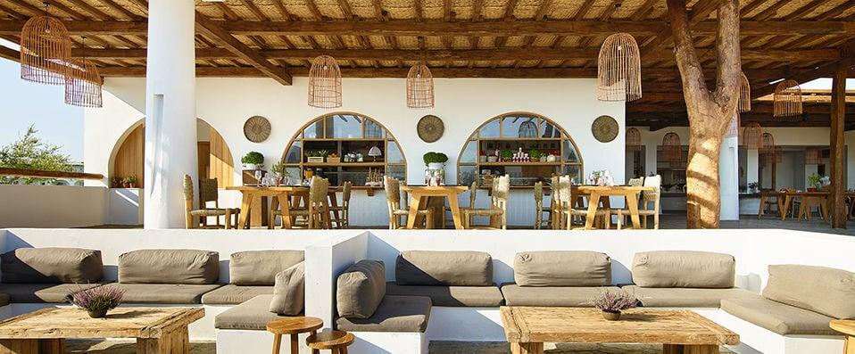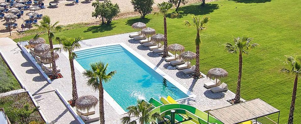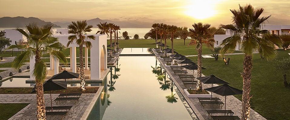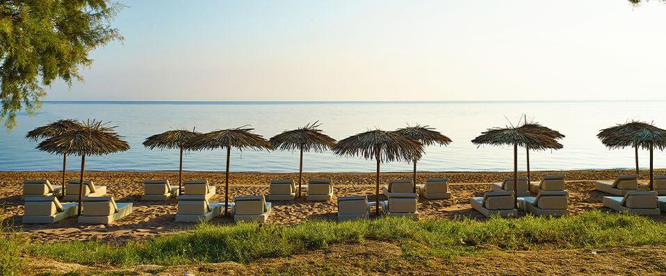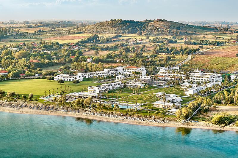 Hotel, ktorý sa nenápadne rozprestiera v nedotknutej prírodnej krajine, kde úrodná pôda ustupuje nedotknutému piesku, objíma a odráža krásu svojho okolia. A je tu veľa krásy, ktorú si môžete vychutnať. Nachádza sa na pokojnom úseku pobrežia, s ničím iným, než s jemne sa vlniacimi vlnami a večerným spevom hmyzu na podčiarknutie vášho pokoja, je to tak dokonalý hotel, aký môžete nájsť. Luxusný rozľahlý rezort zaradený do exkluzívnej hotelovej siete Grecotel sa nachádza v pokojnej oblasti priamo pri pieskovej pláži ocenenej Modrou vlajkou.