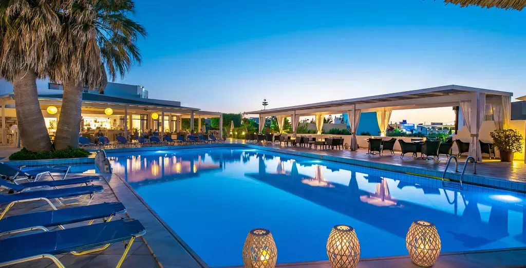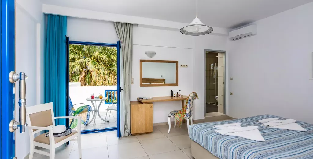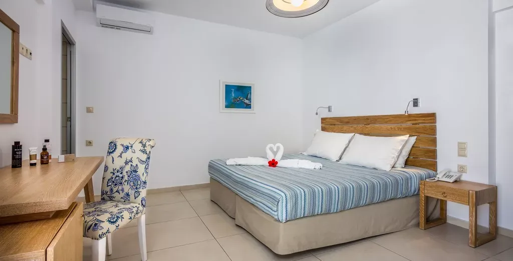 Toto nádherné útočisko, zasadené do nádherných záhrad zdobených sviežimi olivovníkmi a palmami, stelesňuje podstatu krétskeho raja. Len 200 metrov od pláže strávte svoje dni hltaním románu medzi ponormi do Stredozemného mora. Rezort sa môže pochváliť nedotknutým bazénom, doplneným slnkom pobozkanou leňoškovou enklávou – vašou svätyňou na absolútne omladenie. Stredobodom záujmu je sladkovodný vonkajší bazén so slnečnou terasou s ležadlami a slnečníkmi. K dispozícii je aj samostatný detský plavecký areál. Kúpele ponúkajú masáže a procedúry pre tých, ktorí hľadajú čistý relax. Hotel postavený v tradičnej egejskej architektúre; je to ideálne miesto pre pokojnú a relaxačnú dovolenku. Je obklopený záhradami, kvetmi, palmami a olivovníkmi a len pár krokov od 2 piesočnatých pláží.