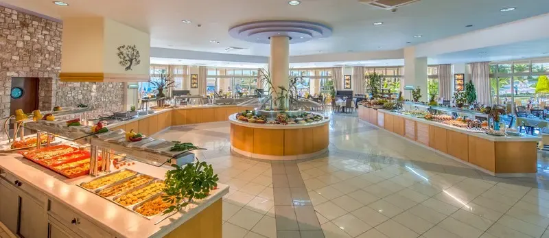Hlavná reštaurácia hotela (520 miest) podáva pestré a medzinárodné raňajky formou bufetu a večere vynikajúcej kvality.