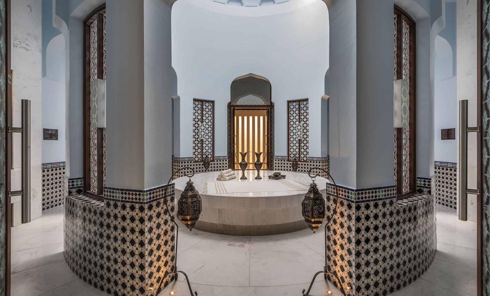 Rezort, inšpirovaný tradičnými dedinami Dhofar, odráža tradičný ománsky dizajn a zároveň zahŕňa moderné a súčasné prvky. V skorších dobách sa v dedinách obklopujúcich Salalah vyznačovala majestátna hlavná budova alebo pevnosť, v ktorej sídlil šejk (vládca) miestnej komunity postavený na vyvýšenom mieste, aby riadil svoju obec zhora. Fasády ich múrov z nepálených tehál tvorili aj hranicu dediny, prerušovanú impozantnou drevenou vstupnou bránou. Rezort použil tento koncept, aby znovu vytvoril atmosféru ako na dedine, vyžarujúcu pocit minulých dní. Použitie symetrie je tiež dôležitou črtou v celom areáli s vyvýšenými vodnými prvkami z čierneho kameňa, ktoré napodobňujú staroveký zavlažovací systém falaj smerujúci k dôležitým ohniskám, moru a lagúne. Ohromujúce vstupné oblúky objímajú krásu islamskej architektúry a dopĺňajú prírodnú krajinu a palmy, napodobňujúc krivku ich pôvabných konárov. Oblúk sa nachádza v celom hoteli, pričom najpozoruhodnejšie príklady nájdete vo vstupnej hale a kúpeľoch, čo pomáha vytvárať autentickú atmosféru.