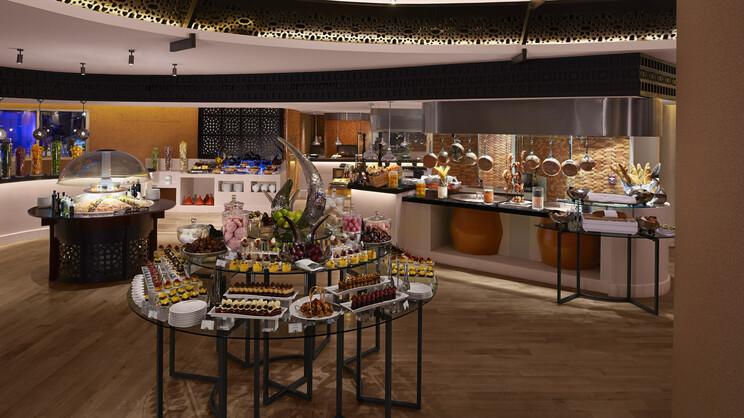 - Reštaurácia Azraq: od 1 roka, kuchyňa: ázijská, medzinárodná, indická, regionálna, ryby/morské plody, bezlepkové jedlá: bez poplatku, vyžiadanie a rezervácia nie je potrebná, detské menu: bez poplatku, vyžiadanie a rezervácia nie je nutná, vegánske jedlá: bez poplatku, Dopyt & rezervácia nie je nutná, bufet, show cooking, Dopyt & rezervácia nie je nutná, bez poplatku, január - december, denne 6:30 - 10:30, klimatizácia, s terasou, fajčiarsky priestor