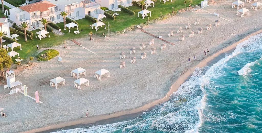 Hotel sa nachádza v zafírovom mori na Krétskej riviére, kde môžete utiecť za relaxačnou dovolenkou.