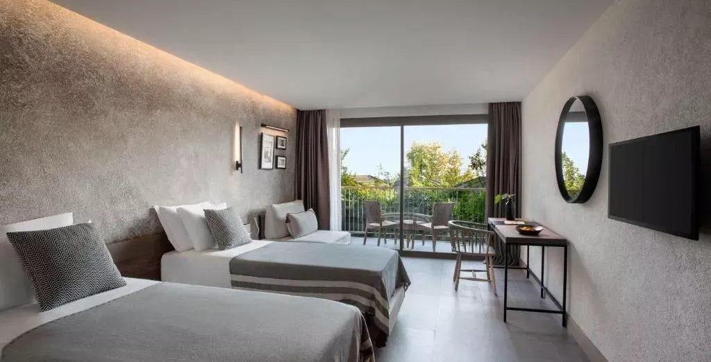 Táto ponuka je založená na výbere medzi rodinnou prepojenou izbou v hlavnej budove s výhľadom do záhrady (40 m²), izbou Premium Comfort len ​​pre dospelých s výhľadom do záhrady (30 m²) alebo izbou Premium Comfort len ​​pre dospelých s výhľadom na more (30 m²). Prepojená rodinná izba v hlavnej budove s výhľadom do záhrady (40 m²)