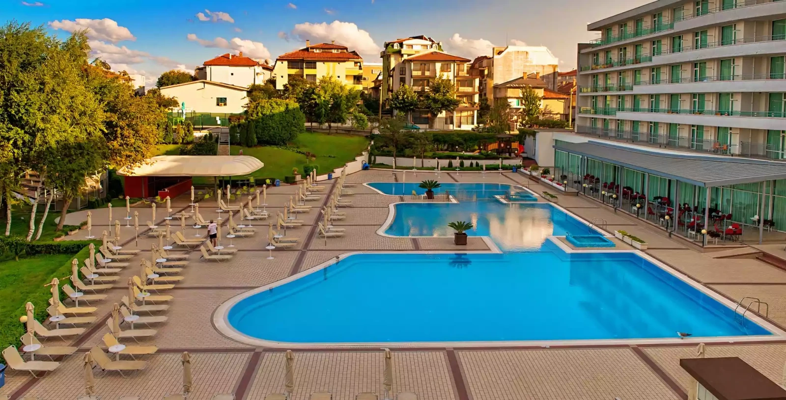 Sol Nessebar Palace – päťhviezdičkové ošetrenie a rodinná zábava v kombinácii s množstvom bazénov (a toboganov), detskými ihriskami a množstvom možností stravovania – vrátane talianskej reštaurácie a stánku so zmrzlinou na pláži