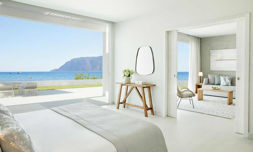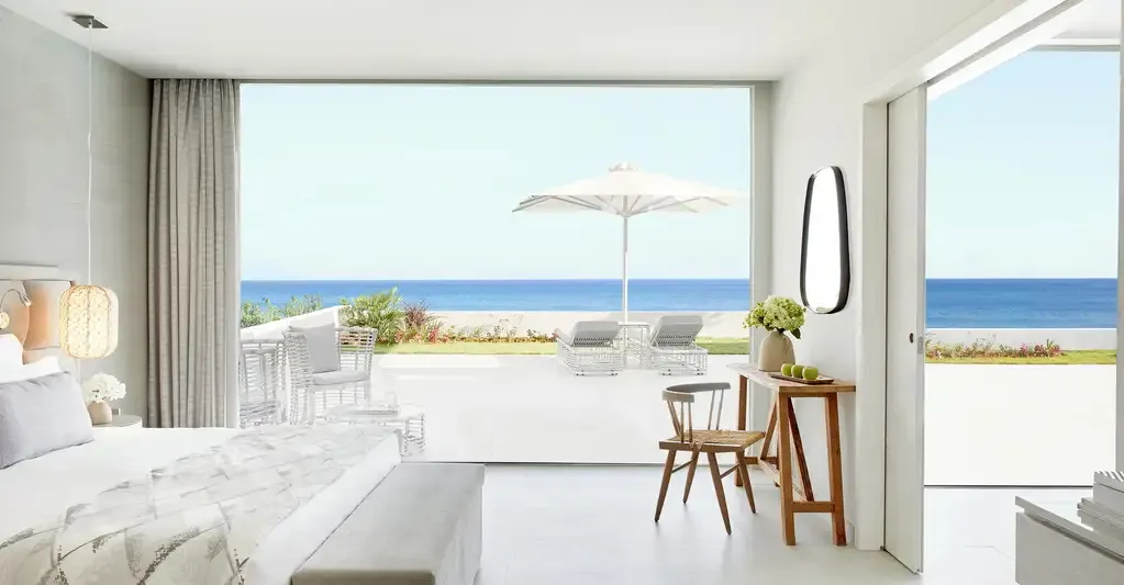 Vaša dovolenka začína hneď, ako vstúpite dovnútra. Personál vás privíta ako starých priateľov, zatiaľ čo pokojná plážová výzdoba boho je moderná, neformálna a elegantná. Po vybalení sa poprechádzajte po krásne upravených záhradách, aby ste sa dostali k bielemu piesku pláže Kefalos a k lákavým azúrovým vodám mora. Pláž je dobre zásobená množstvom lehátok a slnečníkov (s čašníkmi, ktorí vám bez ďalších nákladov prinesú čerstvé ovocie, lahodné koktaily a chladenú vodu), takže nie je problém tam chvíľu zostať!