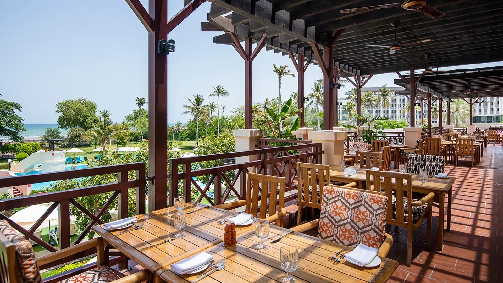 Pre celodenné stravovanie je tu Musandam Cafe and Terrace Restaurant s vnútorným a vonkajším posedením, ktoré ponúka veľkolepé bufetové menu a týždenné tematické večery, zatiaľ čo vonkajšia reštaurácia Tomato pri bazéne ponúka talianske šaláty s morskými plodmi, pizzu a cestoviny, všetko podávané s kvalitnými vínami. Napriek svojmu názvu ponúka Al Ghazal autentickú atmosféru anglickej krčmy vrátane šípok a biliardu a má veľkoplošnú televíziu na sledovanie najnovších športových udalostí. Vo vstupnej hale hotela Majlis Al Shams, kaviareň na otvorenom priestranstve, ponúka široký výber ľahkých jedál a občerstvenia a tiež predáva chutné koláče, pečivo a chlieb, ktorý si môžete vziať so sebou.