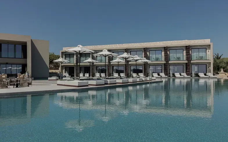 Hostia budú uchvátení panoramatickými výhľadmi na Iónske more, ktoré si môžete vychutnať z početných terás rezortu a úžasných nekonečných bazénov v štýle lagúny. Rezort vyžaruje modernú sofistikovanosť s elegantným dekorom v štýle boho. Predstavte si odpočinok v elegantnej izbe, kde sa moderné pohodlie hladko spája s pokojným prístupom do bazéna alebo dokonca do súkromného bazéna, čo pozdvihuje koncept relaxácie. Pre tých, ktorí hľadajú extra dotyk luxusu, mnohé izby ponúkajú prístup do bazéna alebo súkromného bazéna, ktorý je ideálny pre intímne chvíle a pokojné kúpanie. Ponorte sa do elegantnej výzdoby v štýle boho a moderného komfortu, ktoré definujú estetiku nehnuteľnosti a robia z nej ideálne útočisko pre páry. Čakajú na vás vychytávky, ktoré istotne oceníte. Honosné suity, ktoré sú vhodné pre kráľovskú rodinu – kávovary na espresso, luxusné raňajky a bezdrôtový reproduktor, aby ste si mohli zahrať svoje obľúbené dovolenkové melódie.