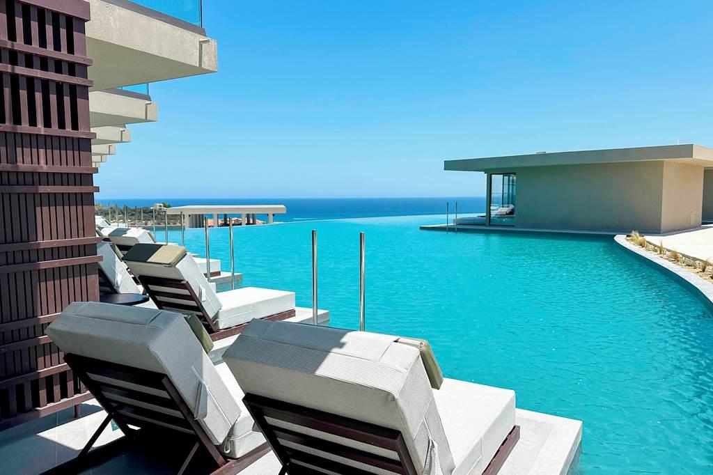 Všetky suity s výhľadom na bazén sú v krátkej vzdialenosti od jedného z dvoch hotelových bazénov; Suity Deluxe Swim-Up sú pripravené byť hviezdami vďaka ich terasám obdivujúcim Iónske more. Ak sa chcete čľapkať v súkromí, Island Suite je jedinou možnosťou s vlastným súkromným bazénom.