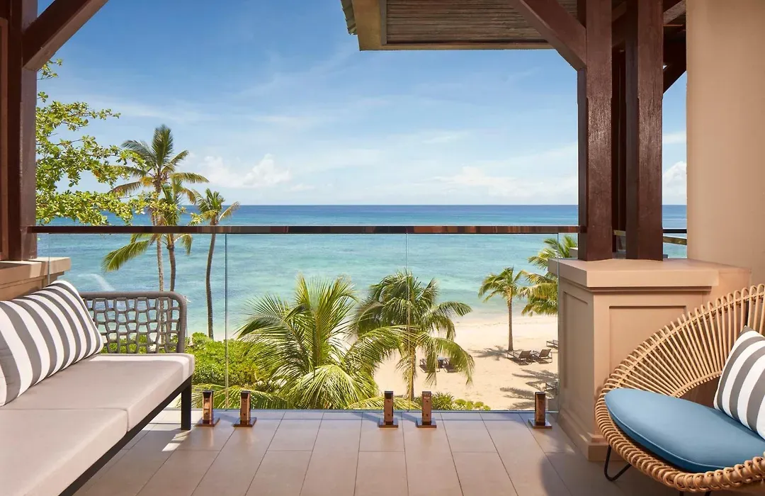 Priestranné hotelové izby Deluxe s výhľadom na oceán sa nachádzajú v hlavnej budove hotela a ponúkajú výhľad na hotelovú tropickú záhradu, ktorá vedie na pláž a Indický oceán.