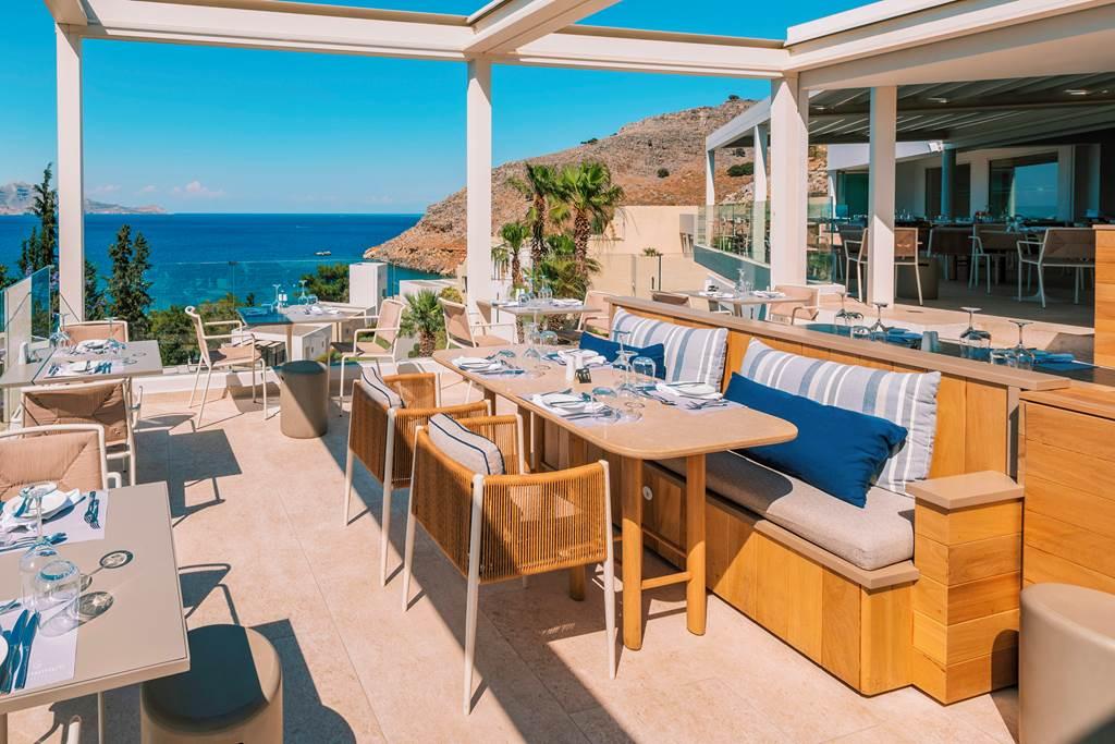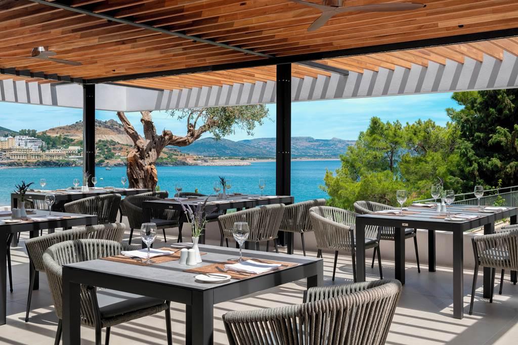 Hotel ponúka niekoľko možností stravovania, ktoré si môžete vychutnať počas celého pobytu. Kvalitná grécka a medzinárodná kuchyňa. Vychutnajte si jedlá z miestnych čerstvých organických surovín. Osviežujúce nápoje sa podávajú v bare pri bazéne a hostia môžu stolovať v a la carte s tradičnou pecou na drevo. S tromi reštauráciami (reštaurácia „Pelagos“ Rhodian, hlavná reštaurácia „Estia“ a  „Meltemi“ Reštaurácia), dva bary ponúkajúce koktaily pred alebo po večeri a klasické salóniky.