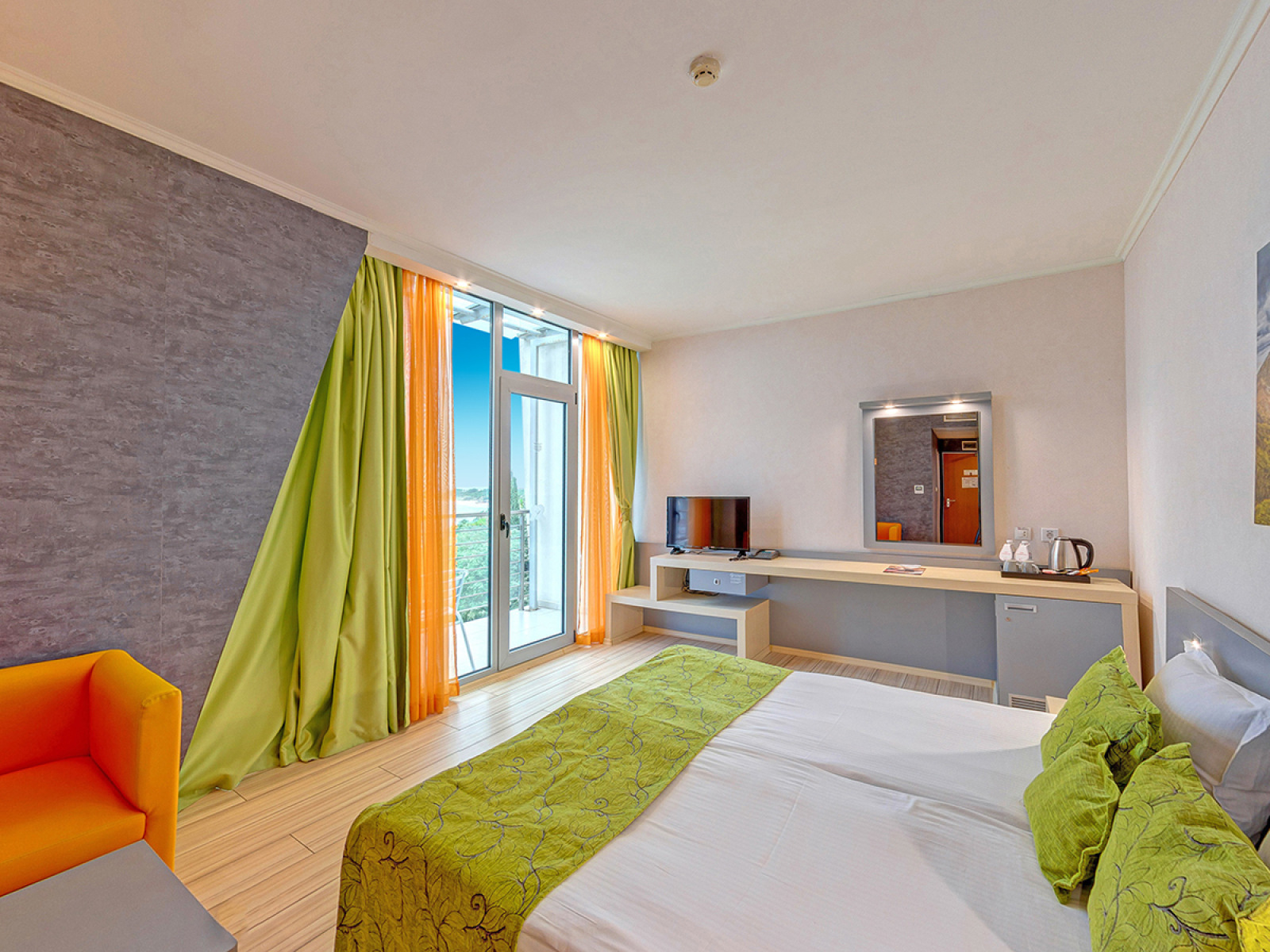 Tento hotel, ktorý spája jedinečnú polohu medzi Starým mestom Nesebar a Slnečným pobrežím, je ideálny pre tých, ktorí hľadajú oddychovú dovolenku v Bulharsku. Vyskúšajte strešný bazén a dajte si drink z baru na streche alebo sa len tak prejdite na pláž. Nech už vás baví čokoľvek, vy a váš partner si určite užijete príjemný romantický čas.