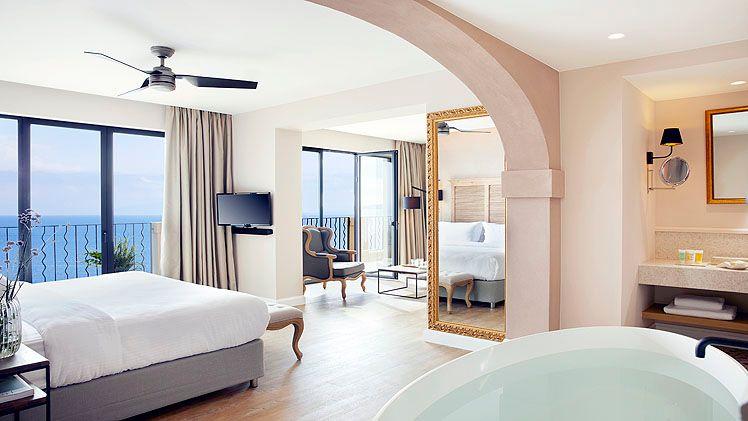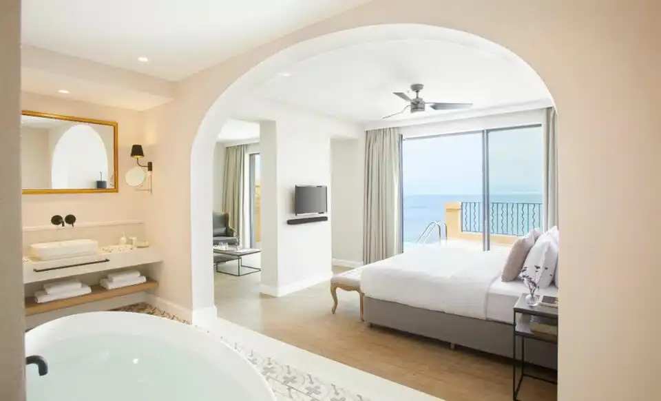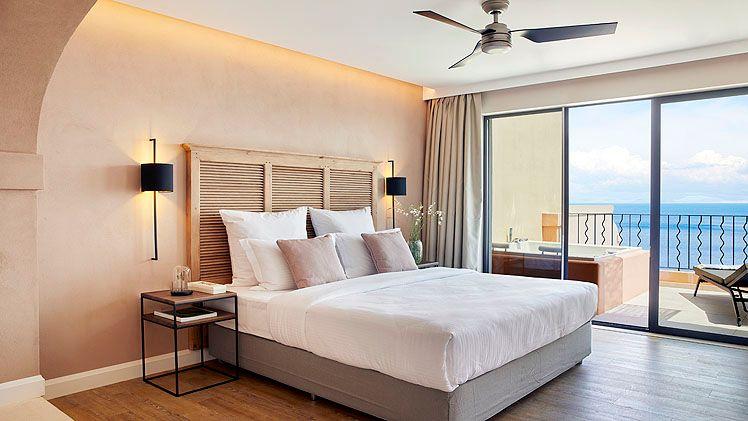 Typy izieb: Junior Suite (30m2, pre 2 osoby, výhľad na more) • Grand Terrace Junior Suite Whirlpool (24m2, pre 2 osoby, privátna terasa s vírivkou, výhľad na more) • Junior Suite Private Pool (30m2, pre 2 osoby, privátna terasa s bazénom, výhľad na more) • Deluxe Junior Suite Whirlpool (35m2, pre 2 osoby, privátna terasa s vírivkou, výhľad na more) • Deluxe Junior Suite Private Pool (35m2, pre 2 osoby, privátna terasa s bazénom, výhľad na more) • Deluxe Suite Whirlpool (50m2, pre 2-3 osoby, privátna terasa s vírivkou, výhľad na more) • Grand Terrace Deluxe Suite Whirlpool (50m2, pre 2-3 osoby, privátna terasa s vírivkou, výhľad na more) • Deluxe Suite Private Pool (50m2, pre 2-3 osoby, privátna terasa s bazénom, výhľad na more)