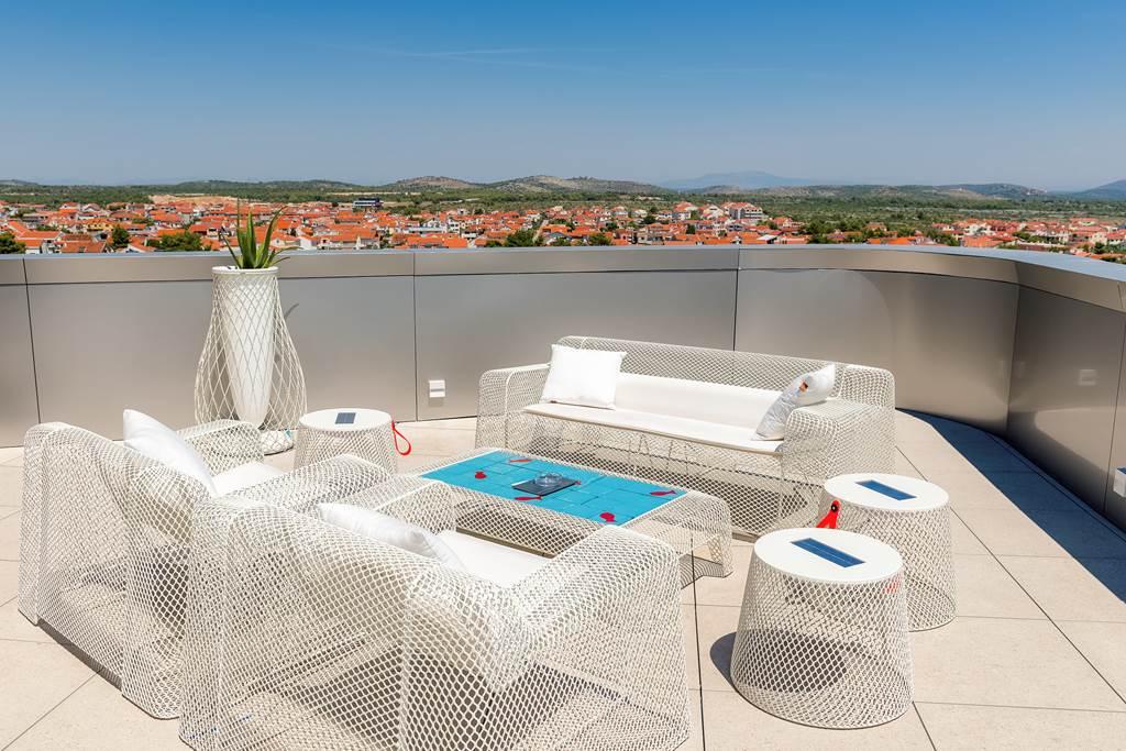 Aria Rooftop Bar je najvyššie položený bar vo Vodiciach, kochajte sa panoramatickým výhľadom na more a mesto Vodice pri popíjaní koktailov.