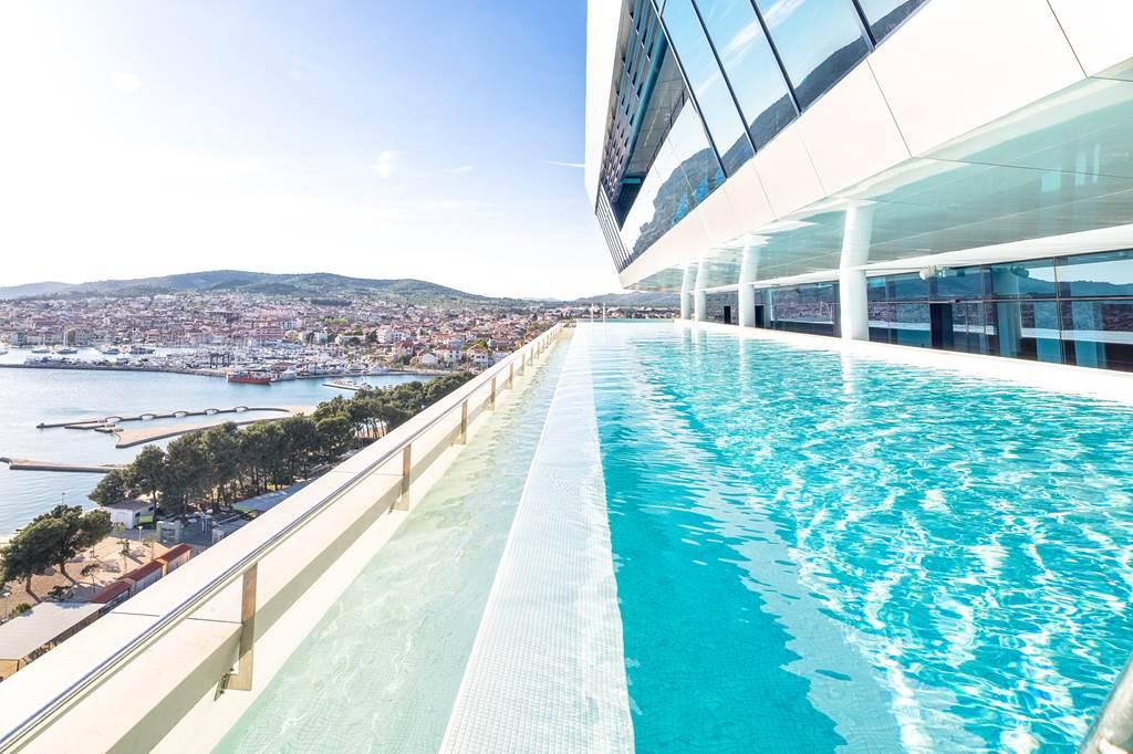 Vstup do bazéna Infinity na 9. poschodí – ideálny pre chvíle úplnej relaxácie s výhľadom