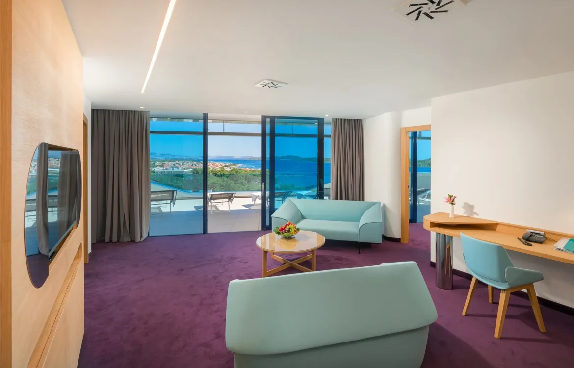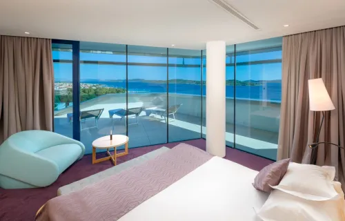 Prémiový apartmán ponúka vynikajúci komfort a rafinovaný luxus, ktorý zvýrazňuje priestranná súkromná terasa s úchvatným výhľadom na more, blízke ostrovy a očarujúce mesto Vodice. Ideálna voľba pre hostí, ktorí hľadajú viac priestoru, pokoja a sofistikovanosti.
