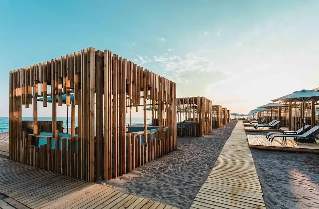 priamo na súkromnej pláži • jemný a bledý piesok aj kamienková pláž • slnečníky, ležadlá a plážové osušky zdarma • Cabanas (za poplatok) • Beach club rešataurácia