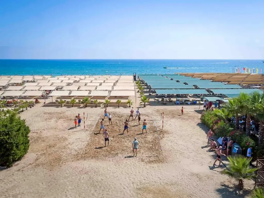 priamo pri hoteli • piesočnatá pláž • pozvoľný vstup do mora • slnečníky, ležadlá a plážové osušky zdarma • nemotorizované vodné športy (zdarma) • bar na pláži