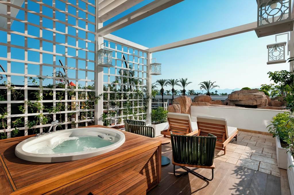 Štandardná izba (26m2, situovaná v hlavnej budove, manželská posteľ alebo oddelené dve postele, balkón s výhľadom na krajinu alebo na more za príplatok, max 2+2 alebo 3 osoby) • Annex štandardná izba s výhľadom do záhrady ( 26m2, situovaná v 2. budove na záhrade, manželská posteľ alebo oddelené dve postele, balkón s výhľadom na záhradu, max 2+1) • Annex štandardná izba s priamym vstupom do bazéna ( 26m2, situovaná v 3. budove na záhrade, na najnižšom poschodí je priamy vstup do bazéna, manželská posteľ alebo oddelené dve postele, balkón s výhľadom na záhradu, max 2+1 • Annex rodinná izba ( 39m2, situovaná vedľa "oceán" bazéna a detského bazéna na záhrade. Spodné podlažie : jedna veľká kúpeľňa, veľká spálňa s manželskou posteľou prepojená s izbou kde sa nachádza poschodová posteľ a TV, na hornom poschodí je jedna veľká kúpeľňa, veľká spálňa s manželskou posteľou prepojená s izbou s dvomi samostatnými lôžkami a TV, max 3+1) • Duplex Suite ( 65m2, situovaná v hlavnej budove, dve spálne, jedna manželská posteľ a dve oddelené lôžka, balkón, max 3+1) • Junior Suite ( 65-85m2, situovaná v hlavnej budove, manželská posteľ s možnosťou prístielky, max 3+1) • Colonel Suite ( 120m2, situovaná v hlavnej budove, veľká spálňa s manželskou posteľou a izba pre deti s dvomi samostatnými lôžkami, jedna kúpeľňa s jacuzzi a druhá so sprchou, balkón s výhľadom na more, max 5+1) • Admiral Suite ( 80-150m2, situovaná v hlavnej budove, jedna suita má dve izby a ostatné majú tri izby, môžu byť využité ako samostatná suita alebo oddelené izby, veľká spálňa s manželskou posteľou a izba s dvomi samostatnými lôžkami, terasa, max 5+1)