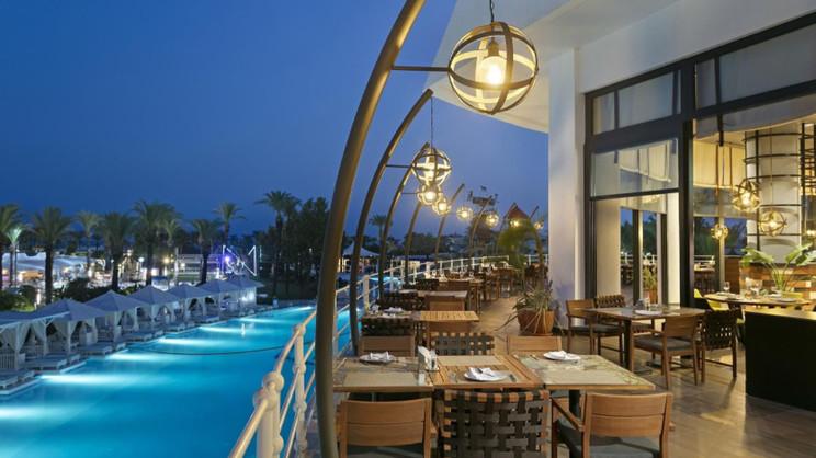 Pokiaľ ide o jedlo a pitie, hotelová bufetová reštaurácia ponúka výber tureckých a medzinárodných jedál na raňajky, obedy a večere s prípravou jedla pred očami hostí. V à la carte reštauráciách sa na večeru podávajú jedlá miestnej a medzinárodnej kuchyne vrátane ázijskej a talianskej. Okrem reštaurácií je tu aj množstvo barov, kde si môžete dať drink a oddýchnuť si.