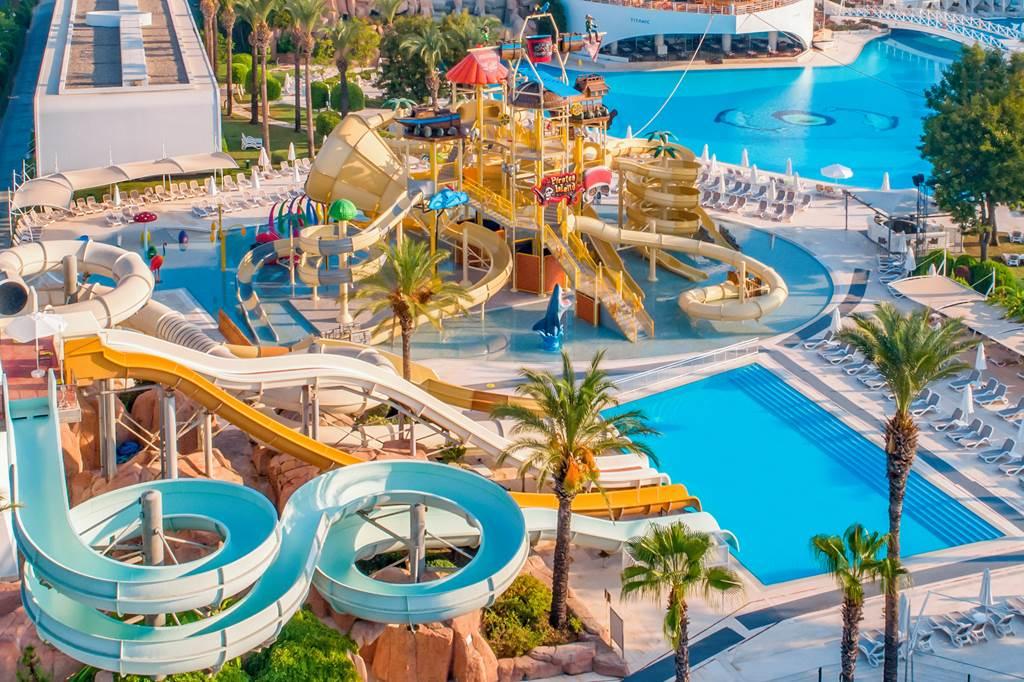 Tento priestranný rezort v sebe spája tematickú architektúru, štýlovú výzdobu, pohodlné ubytovanie pre hostí, vybavenie vhodné pre rodiny s deťmi a množstvo reštaurácií a barov pre ideálnu dovolenku v Turecku. Dni strávené v Titanicu Deluxe Lara nie sú niečím vzrušujúcim. Čľapkajte sa a hrajte sa v rôznych bazénoch; či už je to vnútorný alebo vonkajší. Ponorte sa do bublajúcej jacuzzi alebo si doprajte masáž či kozmetické ošetrenie v kúpeľoch. Stretnite sa ako rodina a zahrajte si plážový volejbal, futbal, basketbal alebo tenis. Najmenší sa môžu zapojiť do miniklubových aktivít alebo si nájsť nových priateľov na ihrisku.